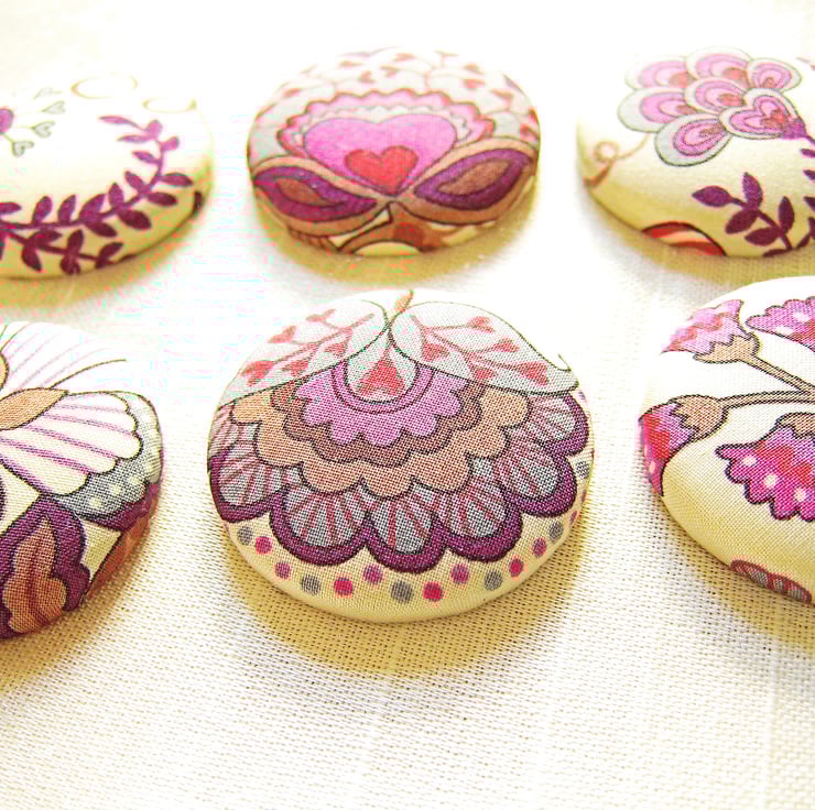 A detailed and varied print this works wonderfully as a co-ordinating set of magnets to beautify your fridge while you organise those 'to do' notes or proudly display works of Art from your little ones. Set of 6 in a handy window tin.