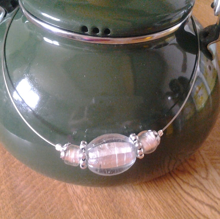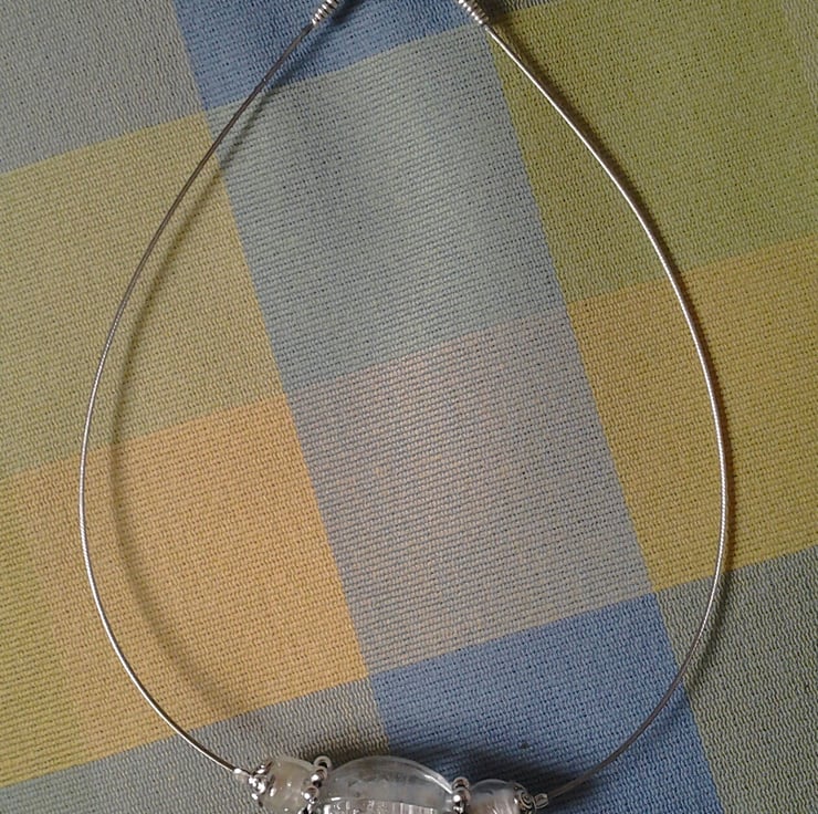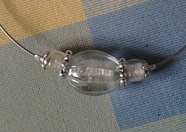 I have made this pretty necklace using memory wire and three beautiful glass foil beads.