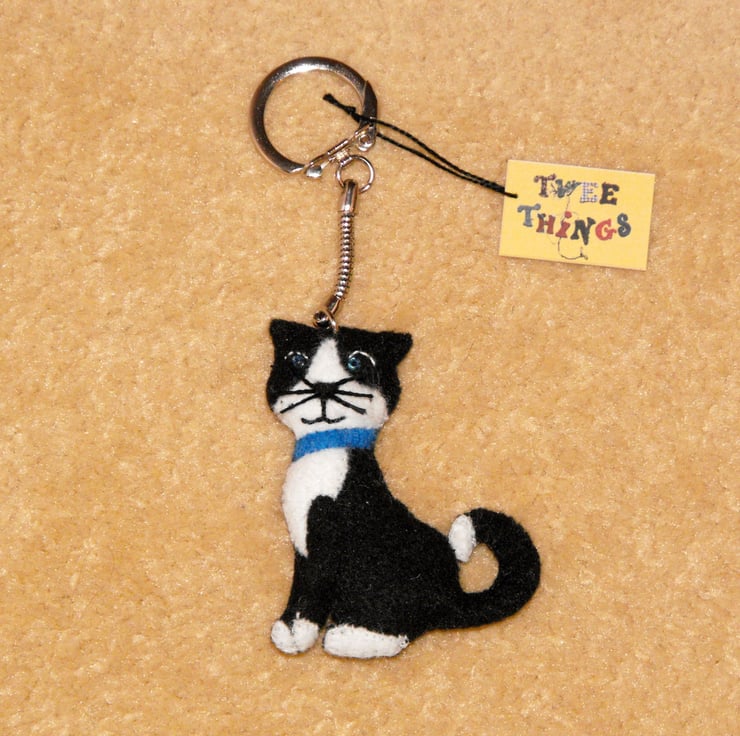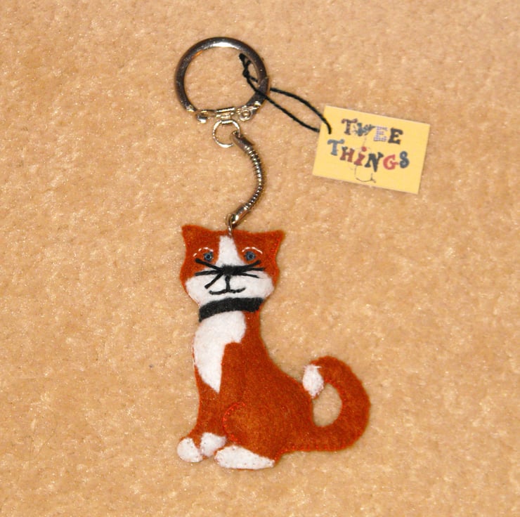 Cute little cat key ring can be made in either black and white or ginger and white felt. Please specify what colour you would like when you place your order.