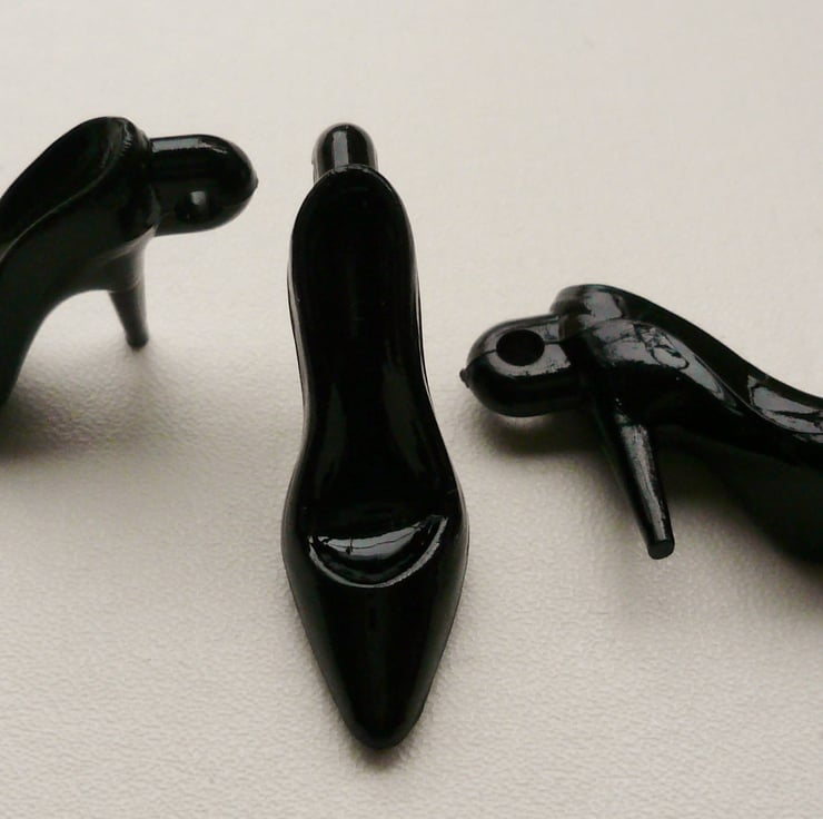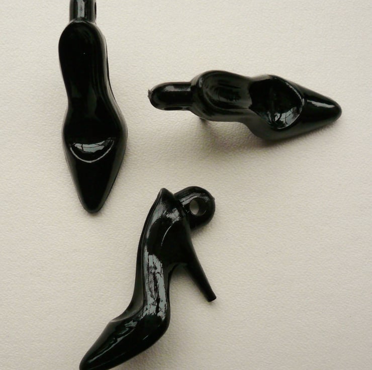 This listing is for 3 x shiny black acrylic court shoe charms. They measure approx 30mm long incl hoop and are 20mm high.