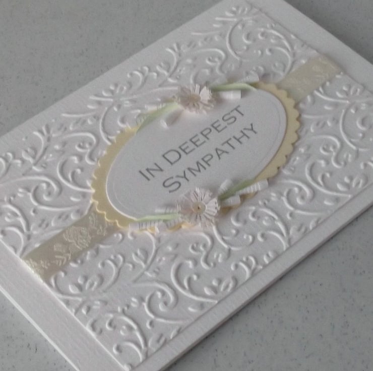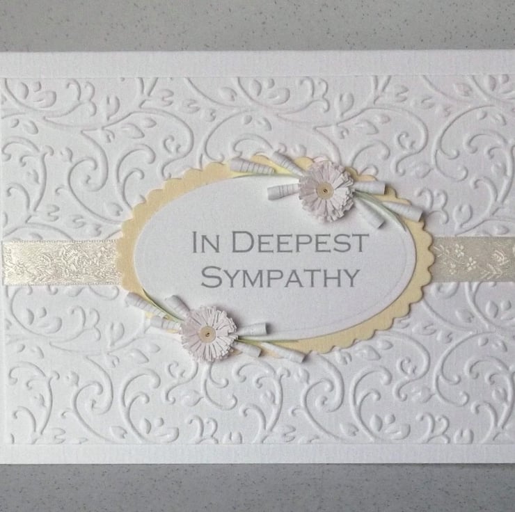 A beautiful handmade quilled card with quilling flowers to send sympathy wishes.