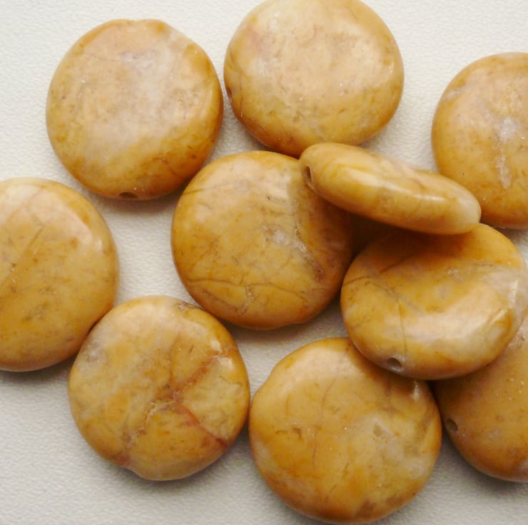 This listing is for 10 x yellow sunstone gemstone coin beads. They measure 15mm across.