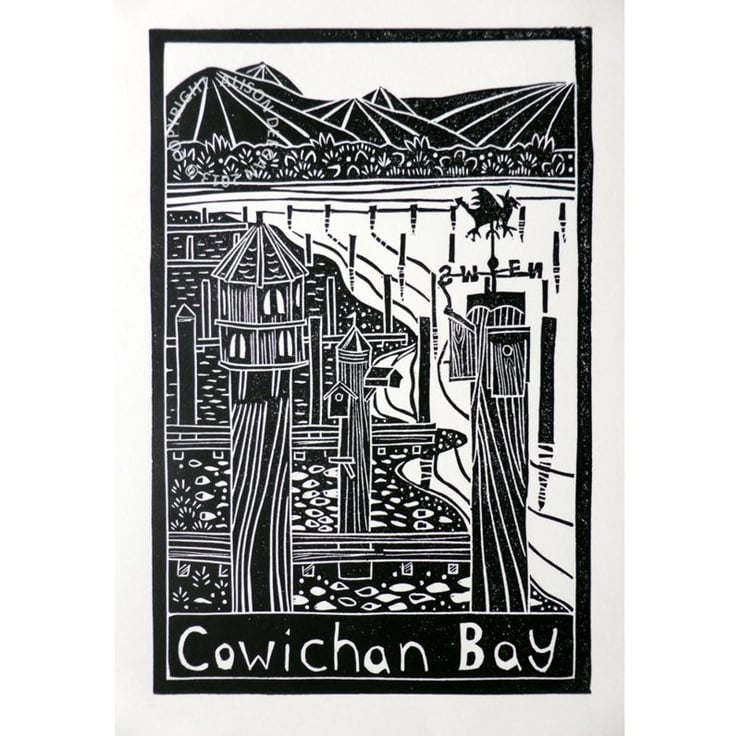 ORIGINAL lino print - 'Cowichan Bay IV'