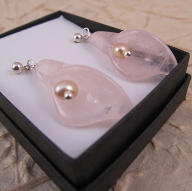 I wanted to create some delicate flower earrings. The pearls and rose quartz go beautifully together, a sense of class is added by the 925 sterling silver.