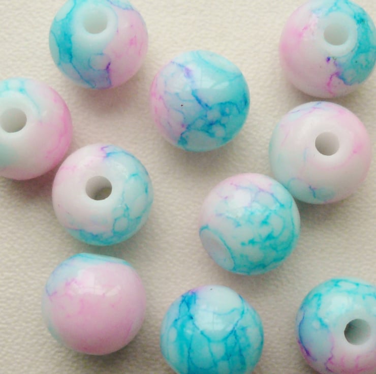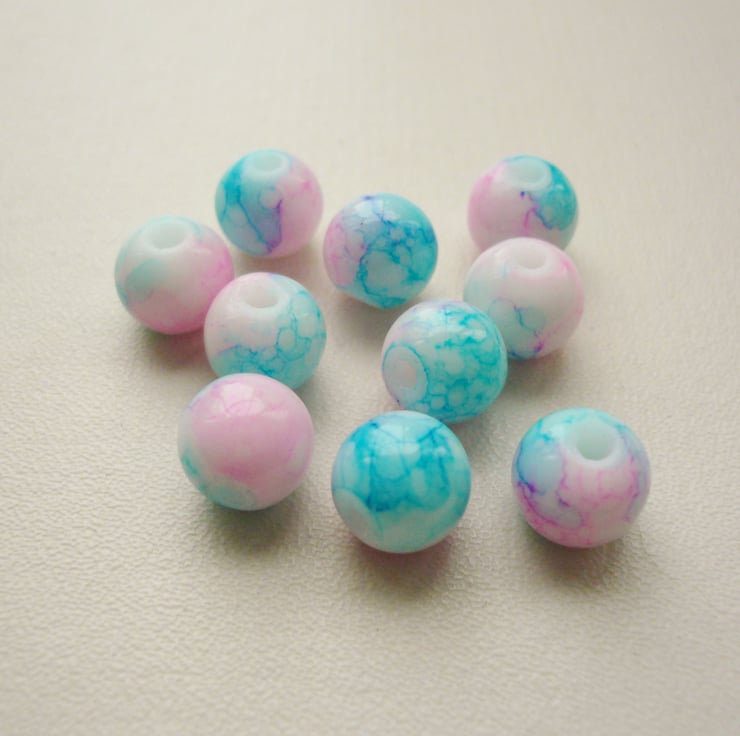 This listing is for 10 x pink and blue two-tone marble glass round beads. They measure approx 8mm.
