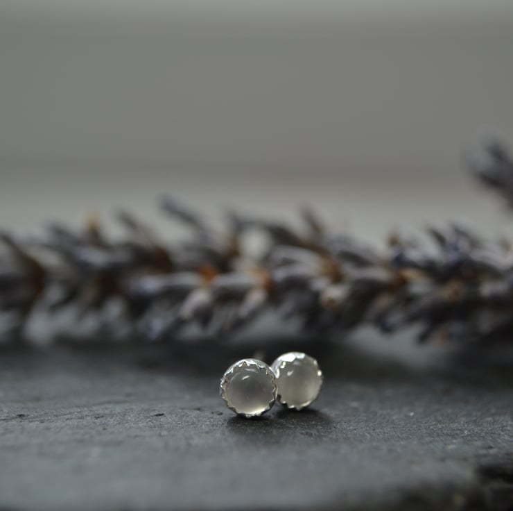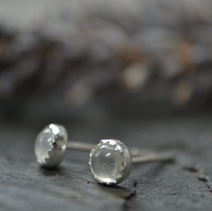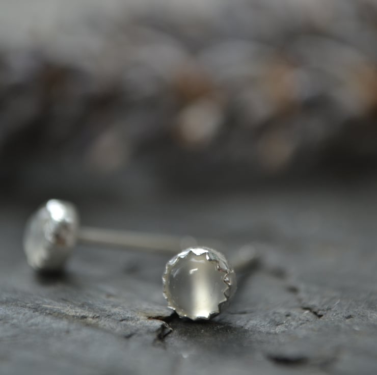 Moonstone (5mm) set in sterling silver, with a sterling silver ear post.