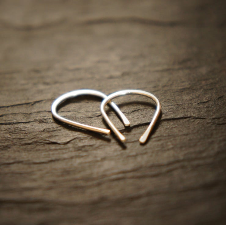 Simple and petit open hoop earrings handmade sterling silver.