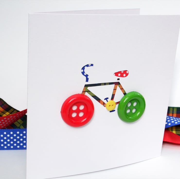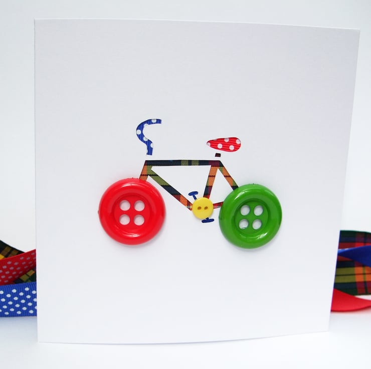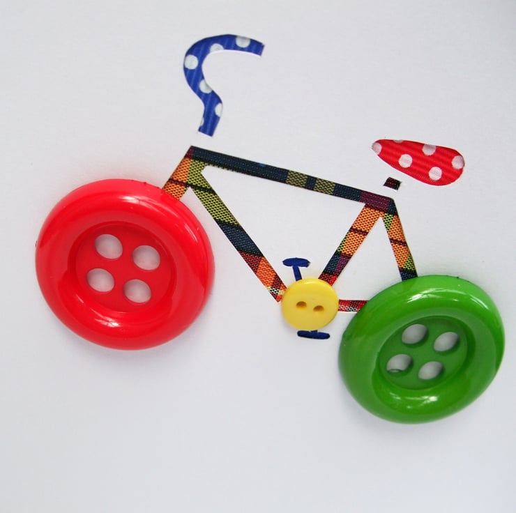 This fun handcut bicycle with button wheels is the ideal card for any cycling mad child (or adult!)