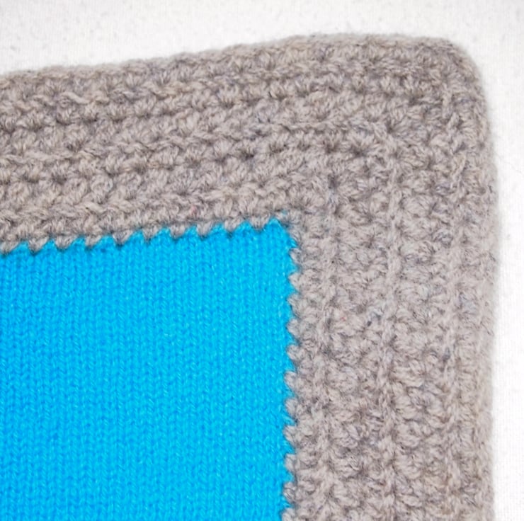 This blanket is made with 100% soft British lambswool on my knitting machine, I hand crochet the grey border.