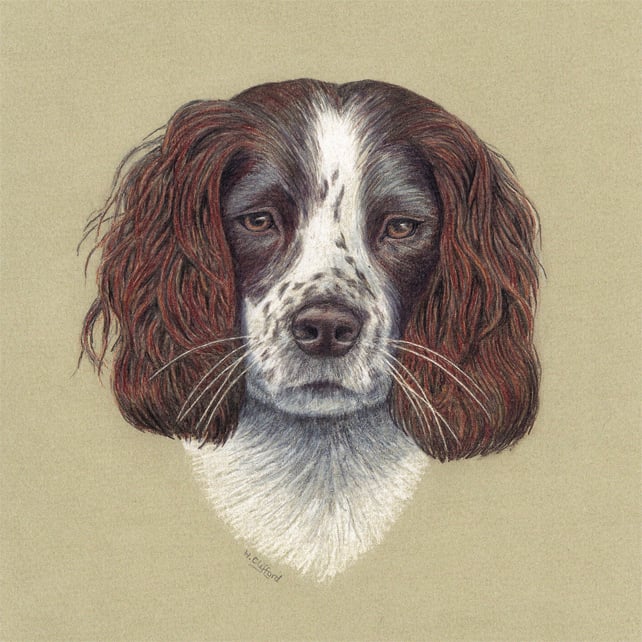 The original coloured pencil artwork for this picture is also available in my Folksy shop: https://folksy.com/items/6937705-Springer-Spaniel-Dog-Original-Coloured-Pencil-Drawing