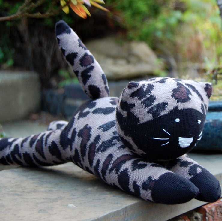Spot is a cuddly soft cat toy made from a brand new pair of socks and filled with polyester fibrefill conforming to EN71. All sock toys are now CE marked and comply with European standards.