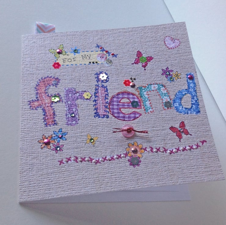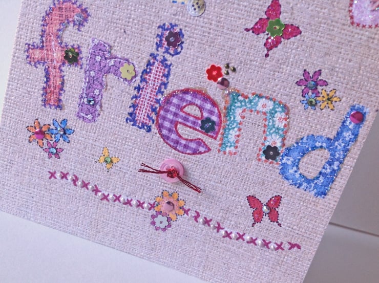 The Applique work is the main design as it spells out the 'Friend', there is also a little message above this saying, 'To My'