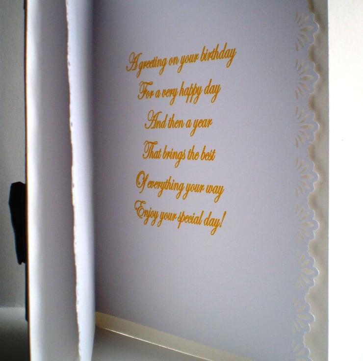Card measures approximately 130x205mm (5x 8in) and would be ideal for an animal lover's birthday or even a new home card. I have shown a card that has been personalised for a customer,please let me know at checkout what you would like on your card. It is decoupage/3D effect and there is an insert with a decorative border ( which I can leave plain if for a male) and there is a greeting
