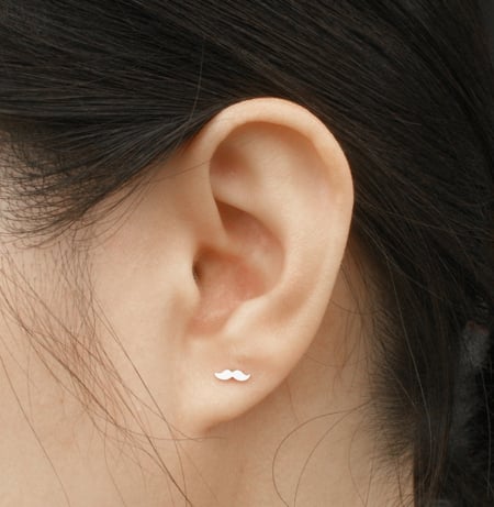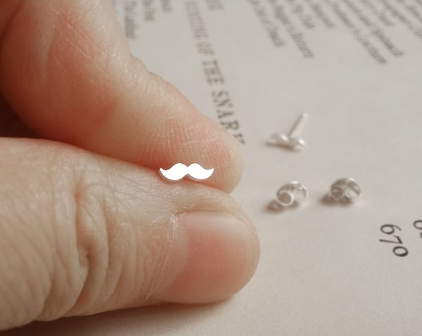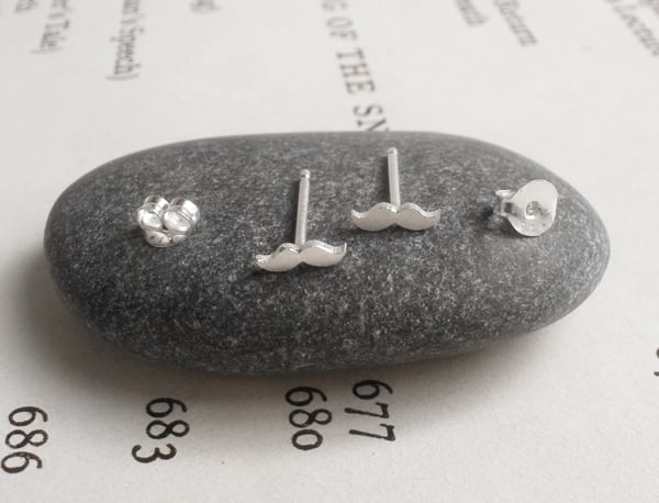 These mini moustache earring studs are handmade at my studio in Cornwall.