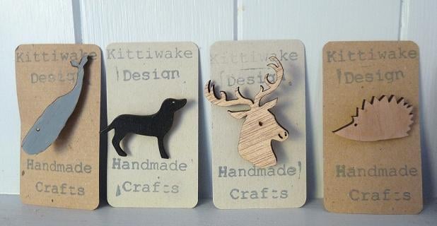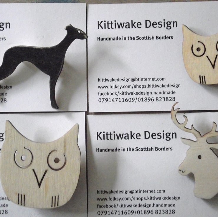 These little animal brooches are a new addition to Kittiwake Design. They are laser cut using our own hand drawn designs, then we sand and varnish or paintl. Each brooch has a little antique brooch pin on the back. The animals can be painted or left natural. Please let me know if you want a specific colour or animal you would like when ordering.