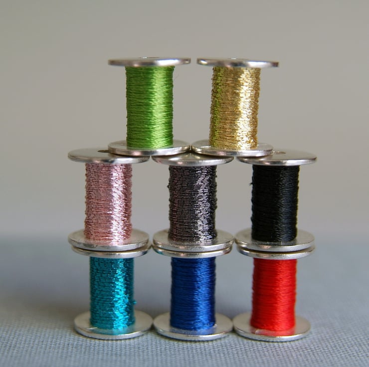 I have a hoard of treasures in my sewing box. My buttons, ribbons and threads remind me of jewellery and some of them I'm pretty sentimental about too. So I made a little silver haberdashery!