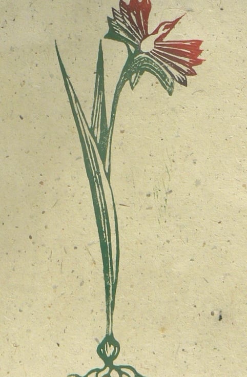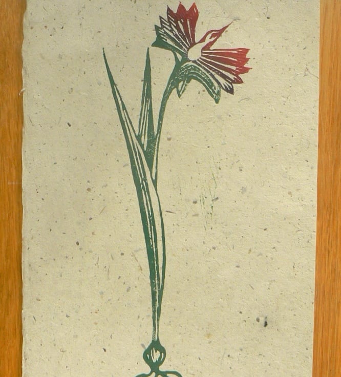 This is the phoenix lily, printed separately. It is handprinted on a favourite paper, handmade from lokta.