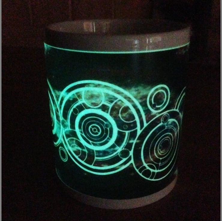 Gallifreyan mug gift, Personalised Dr Who, Glow in the Dark Mug