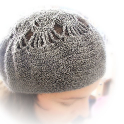 very soft and unique head cover, the beret inspired by vintage doily pattern