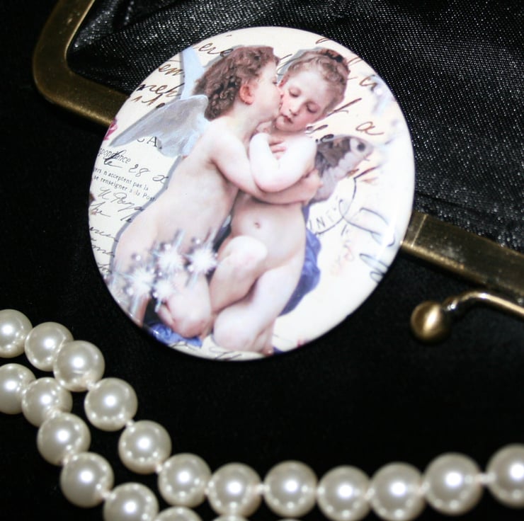 Here are 2 mirrors to choose from, the first shows one of my favourite images I have designed of an angel and fairy kissing against a backdrop of french text, surrounded by stars.
