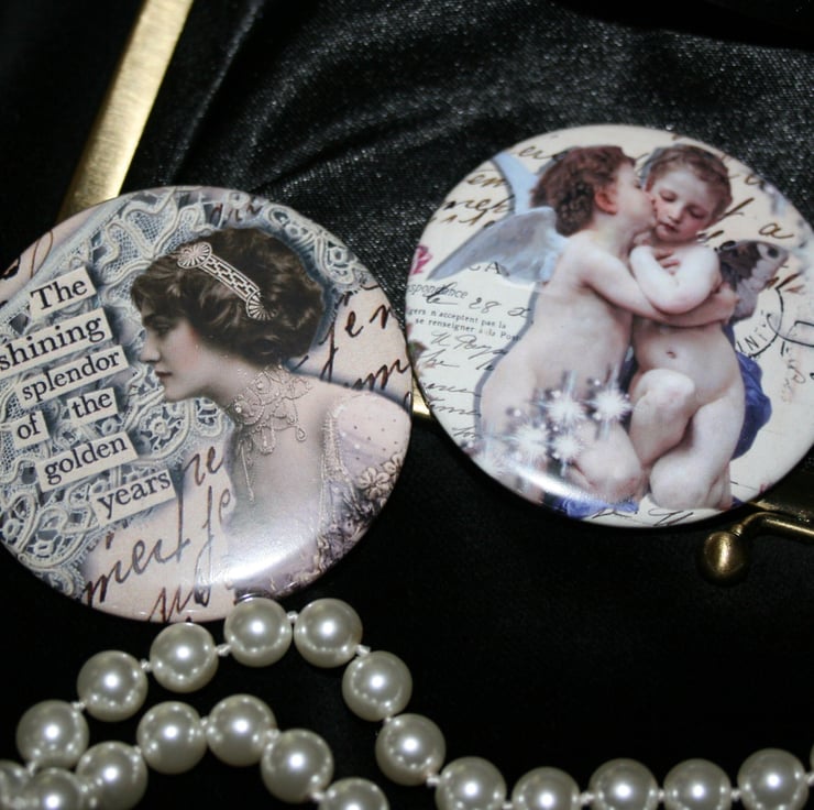 As you may know by now I love to create my own images.So I have incorporated my images into these very pretty and practical pocket mirrors.