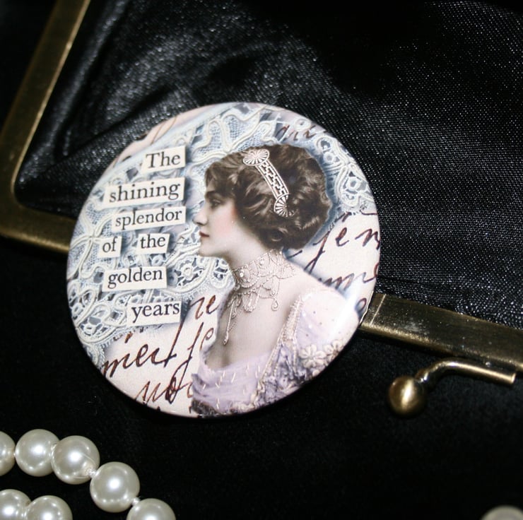 The 2nd design is a bit Downton, with a vintage Edwardian feel to it, the deisgn shows a beautiful actress named Lily Elsie dripping in jewels against a lace backdrop, the phrase reads " The shining splendor of the golden years".