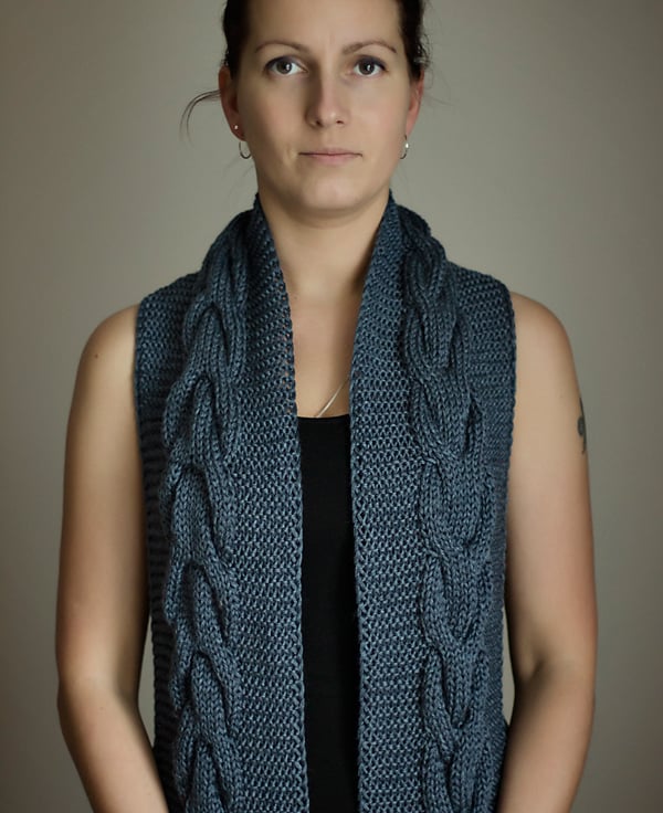 Hand knit scarf , made from wool mix yarn , grey color . 176 cm long, 18cm width.
