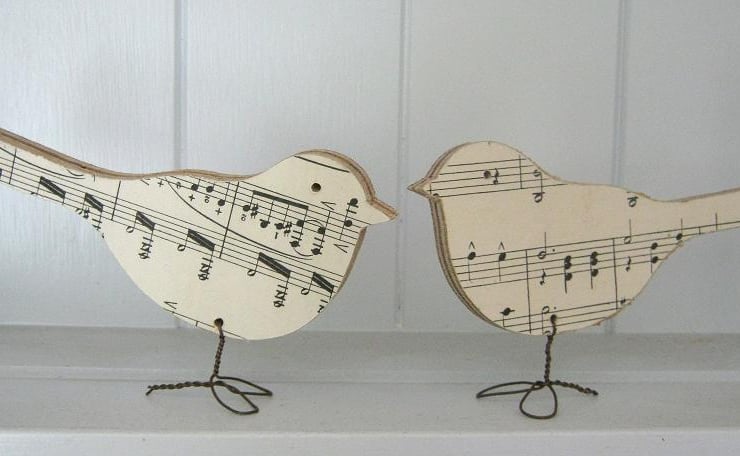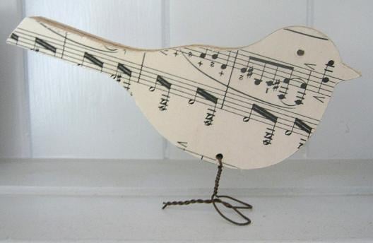 These little birdies with wire legs are handmade using reclaimed timber and are covered in vintage music paper. These birdies can also be covered in various papers so if you would like a bespoke order do contact me.