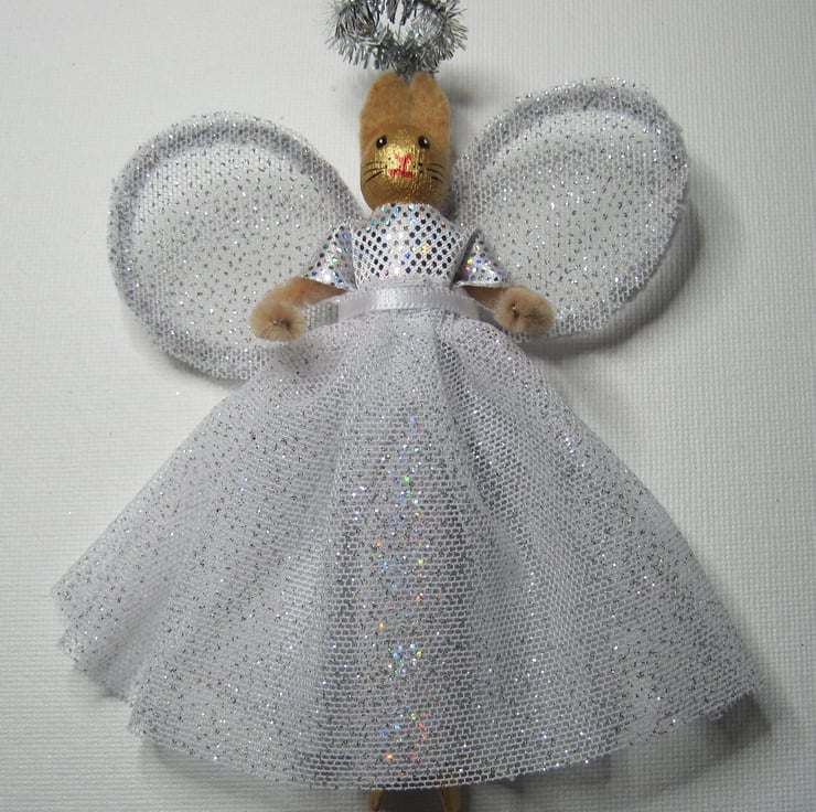 Her wings are hand crafted from pipecleaners and twinkly silver mesh.
