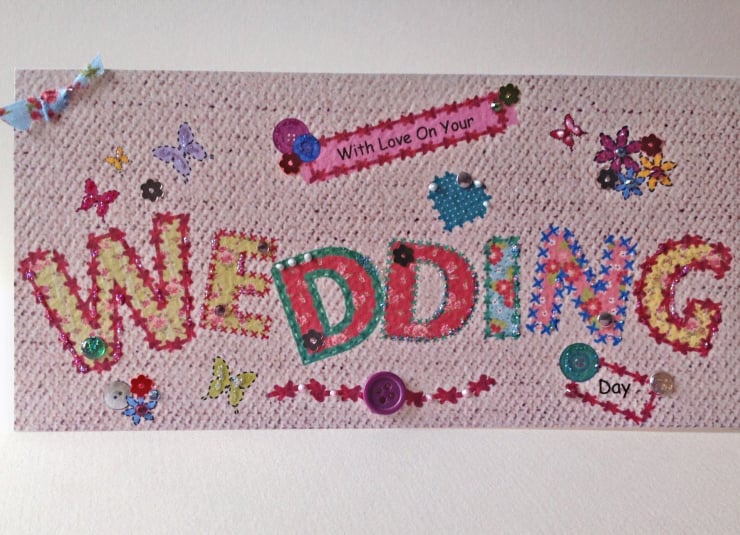 The listing is for a digitally designed, Hand Finished WeddingCard.