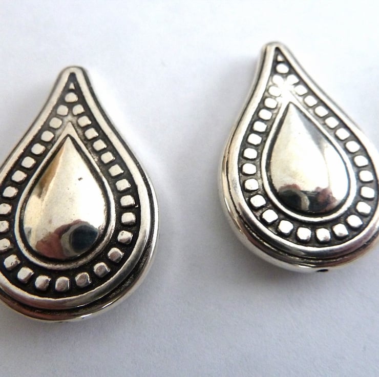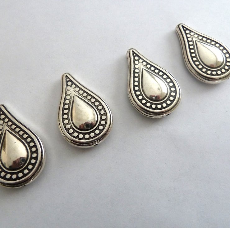 A pack of 4 antique silver teardrop beads, they are acrylic but look like metal so nice and light.