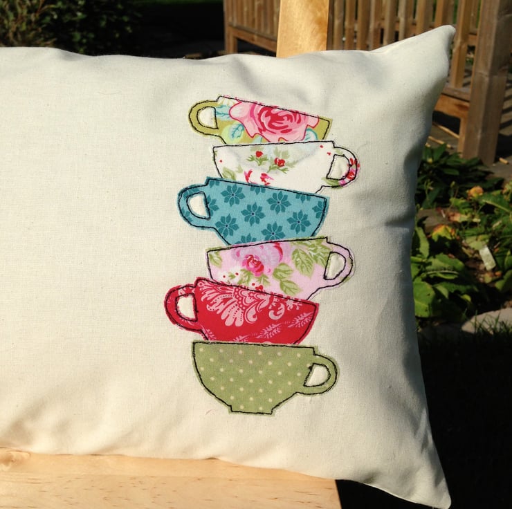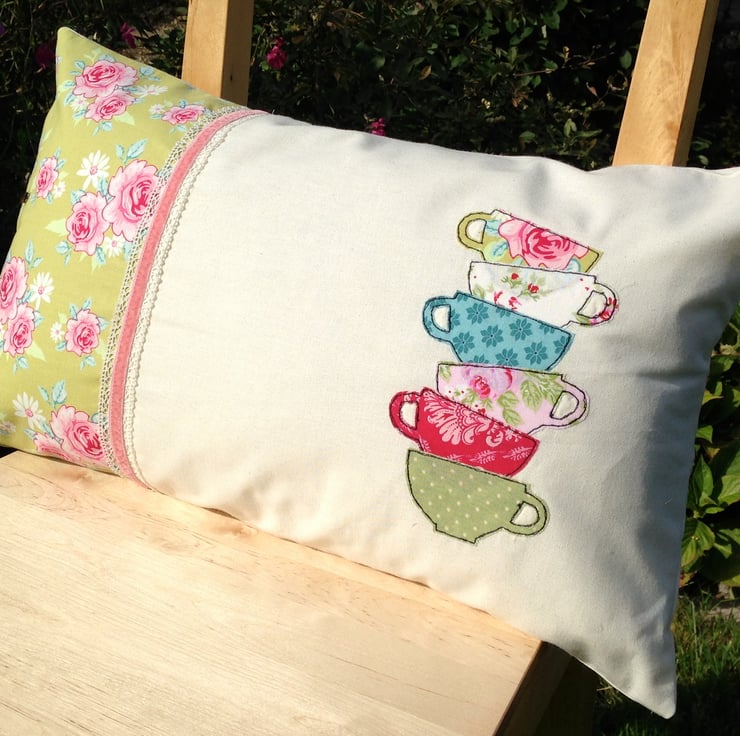 Beautiful freestyle machine embroidered cushion with velvet and crocheted trim. The cushion measures 30x50 and has an envelope back with buttons so can be removed if needed.