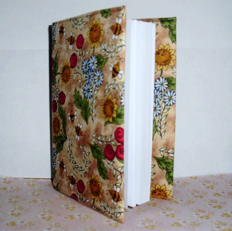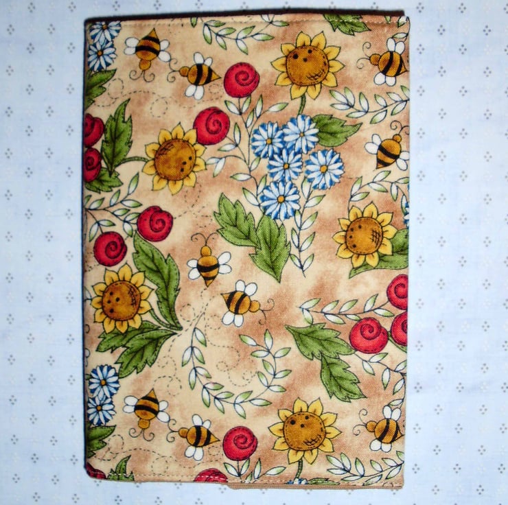 This is an A6 diary (day to page) covered in a very pretty fabric featuring flowers, leaves and bees. The cover is fully lined, and can be removed so that a new diary can be inserted for the following year.