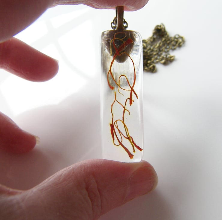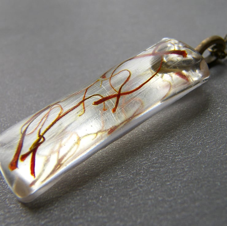 Real Spicy Saffron Neclace, Eco Resin, Eco Pendant, Spice