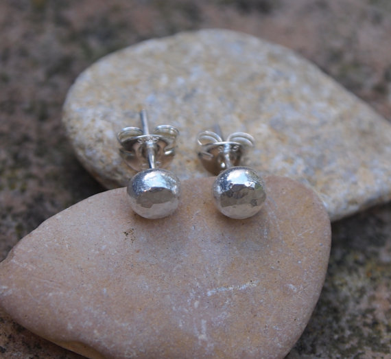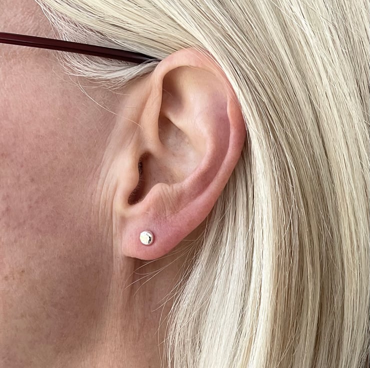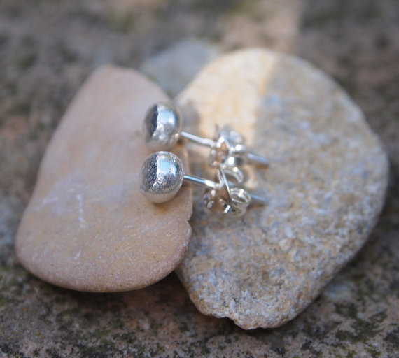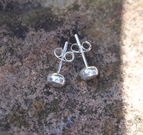 A little pebble of recycled silver has been hammered to shape with further hammering to add texture to the surface. These make great stud earrings for everyday wear.