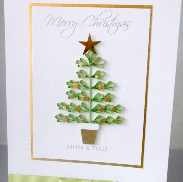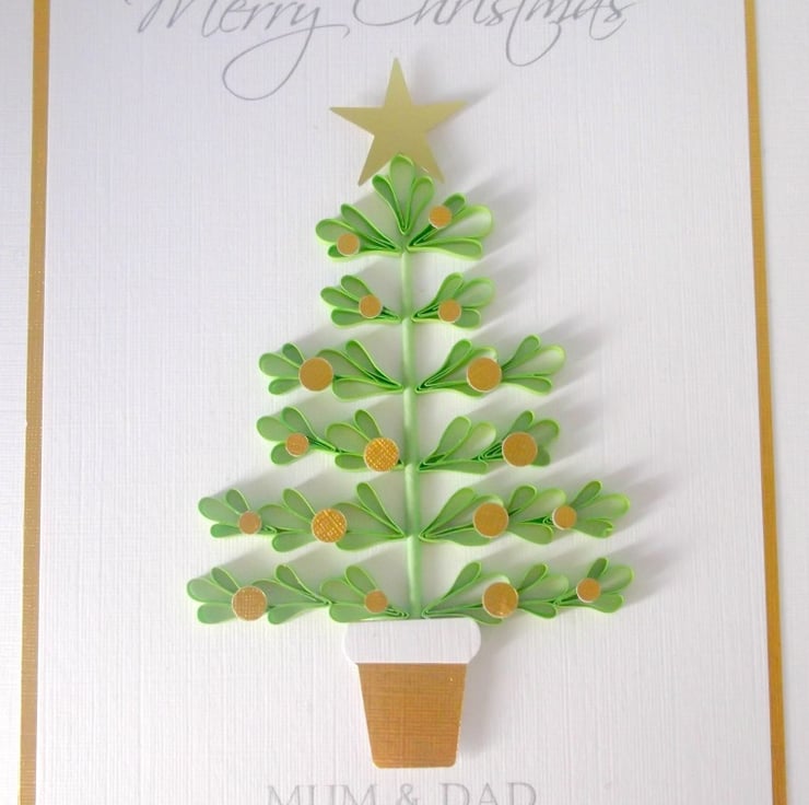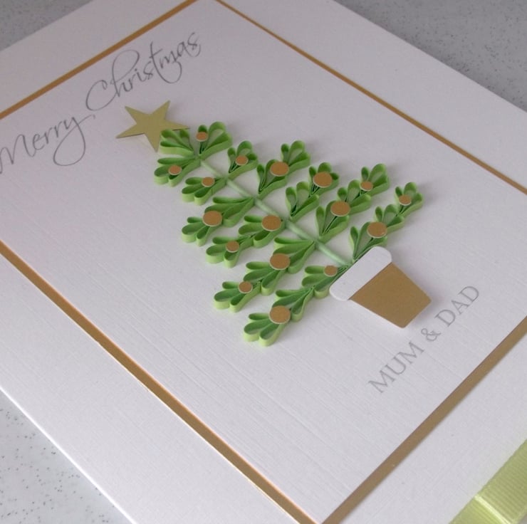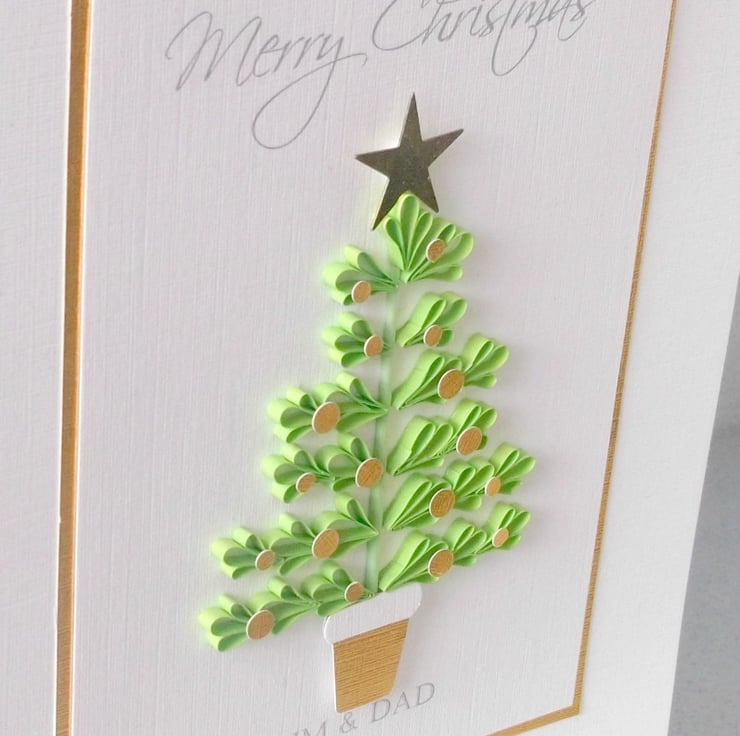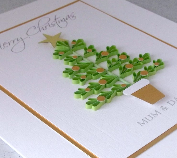 A beautiful quilled Christmas card with a paper quilling Christmas tree, perfect for sending special Christmas wishes to someone you love.