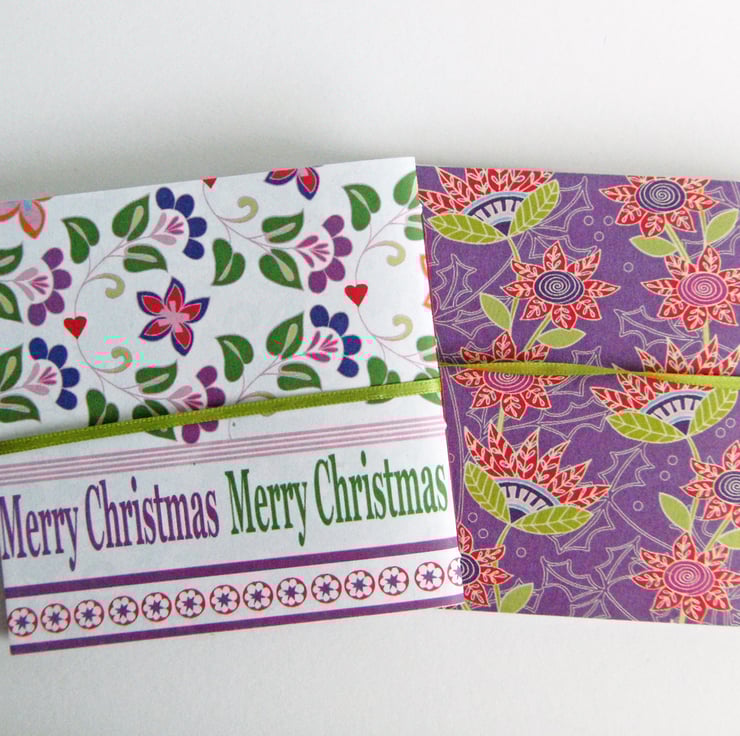 The second has a design of flower sprays, against a white background, with the words "Merry Christmas" along the bottom. The colours of this book are white, purple, orange, blue, green and red.