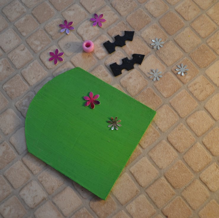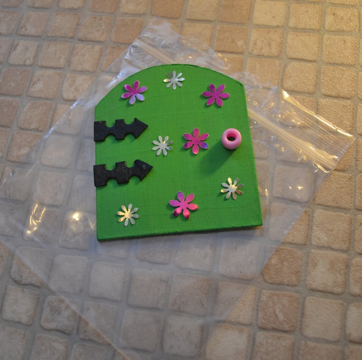Painted wooden fairy door kit with all of the items you need to decorate your own fairy door. These little kits make wonderful party favours and when made, they look lovely placed against a skirting board, bookcase or just against the wall. They should not be placed outside. Fairy doors bring a touch of magic to the home and encourage the little folk to visit and open the portal between their world and ours. This item is approximately 7 cm (2.75 inches) wide and 8 cm (3.15 inches) high.
