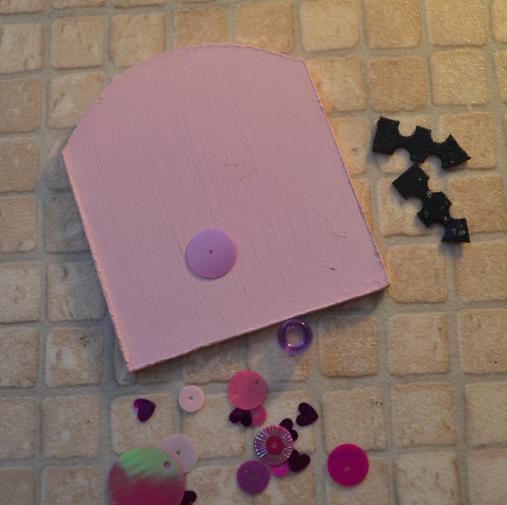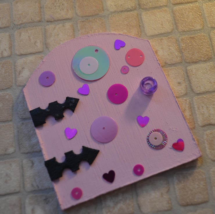Painted wooden fairy door kit with all of the items you need to decorate your own fairy door. These little kits make wonderful party favours and when made, they look lovely placed against a skirting board, bookcase or just against the wall. They should not be placed outside. Fairy doors bring a touch of magic to the home and encourage the little folk to visit and open the portal between their world and ours. This item is approximately 7 cm (2.75 inches) wide and 8 cm (3.15 inches) high.