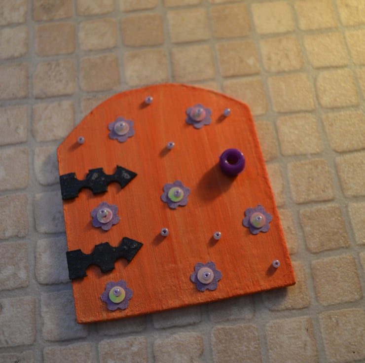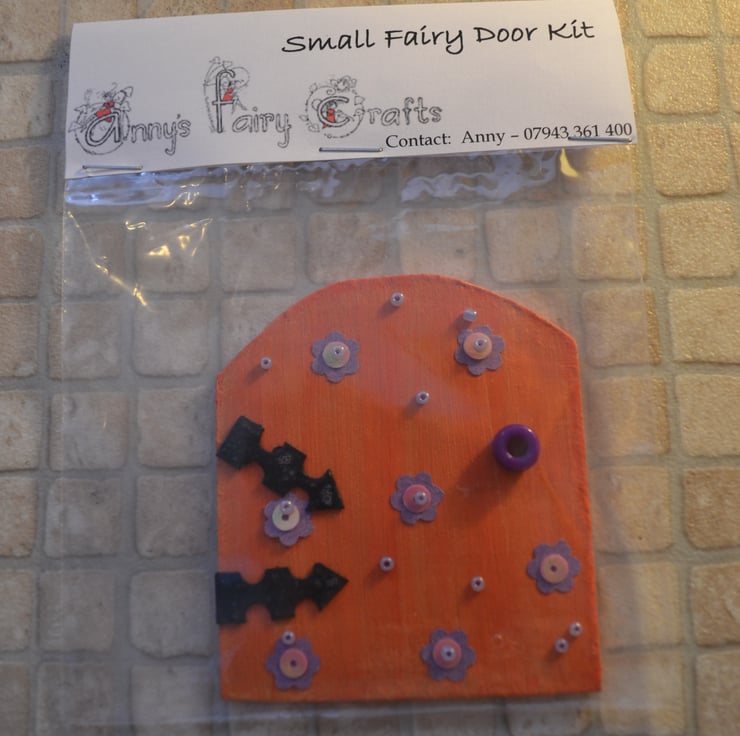 Painted wooden fairy door kit with all of the items you need to decorate your own fairy door. These little kits make wonderful party favours and when made, they look lovely placed against a skirting board, bookcase or just against the wall. They should not be placed outside. Fairy doors bring a touch of magic to the home and encourage the little folk to visit and open the portal between their world and ours. This item is approximately 7 cm (2.75 inches) wide and 8 cm (3.15 inches) high.