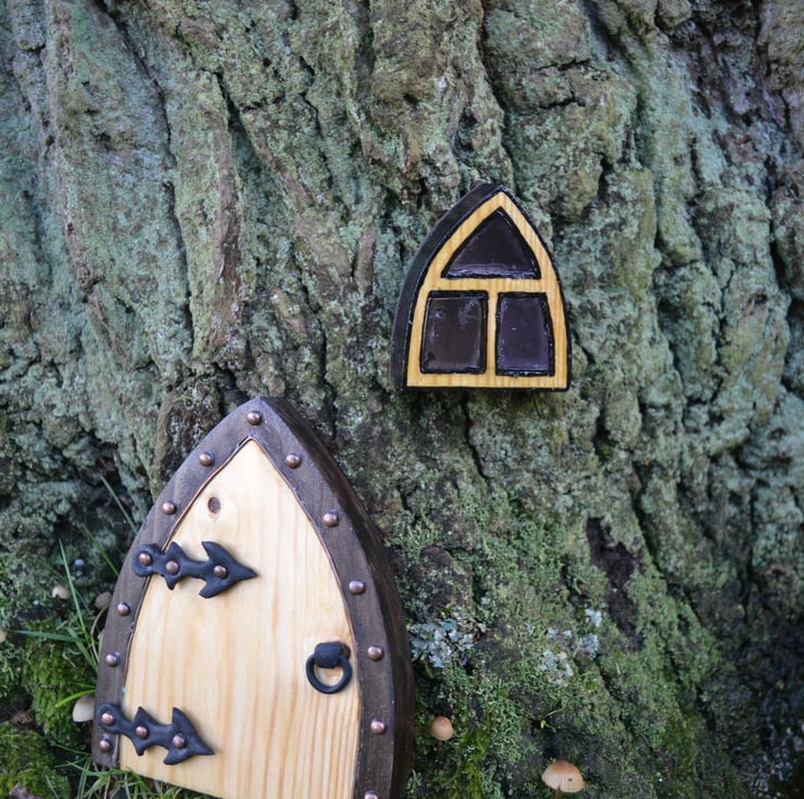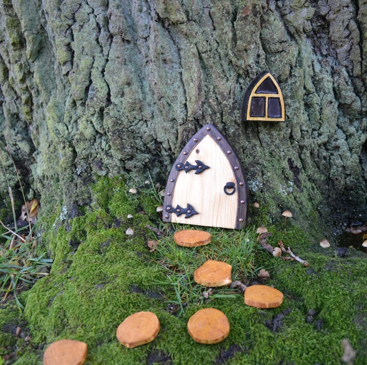 Invite the magic of Fairies, Gnomes and Elves into your garden with one of my unique, handcrafted miniature garden kits consisting of Fairy door (14cm Tall x 12.5cm Wide), a Fairy Window (7cm Tall x 6cm Wide), an oak walkway consisting of 5 stepping rounds (ave. 5cm diameter) and a little bag of fairy dust to help create that magical porthole into the world of Fairies, Gnomes and Elves.