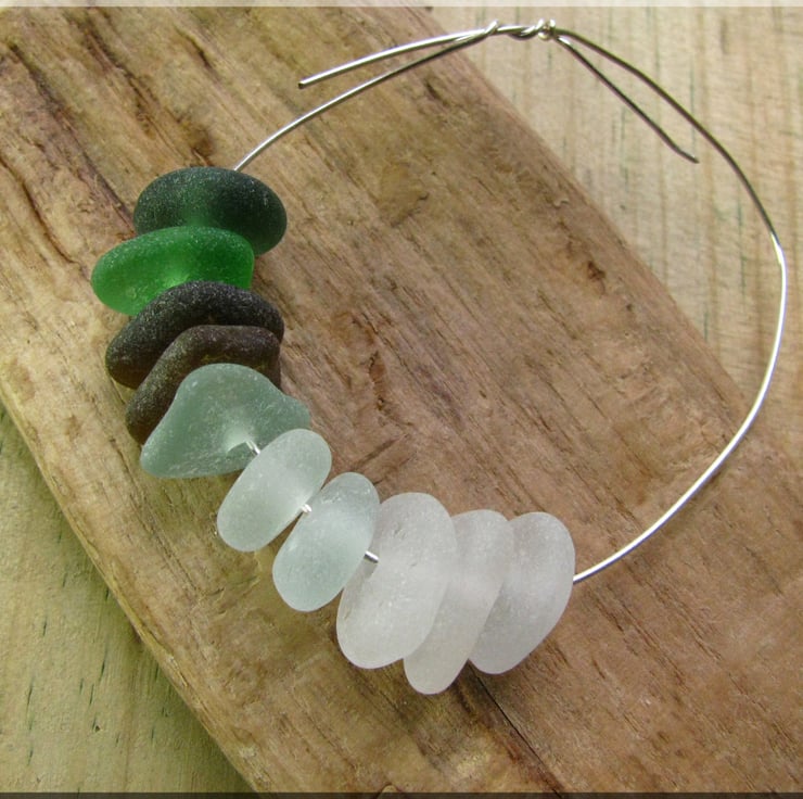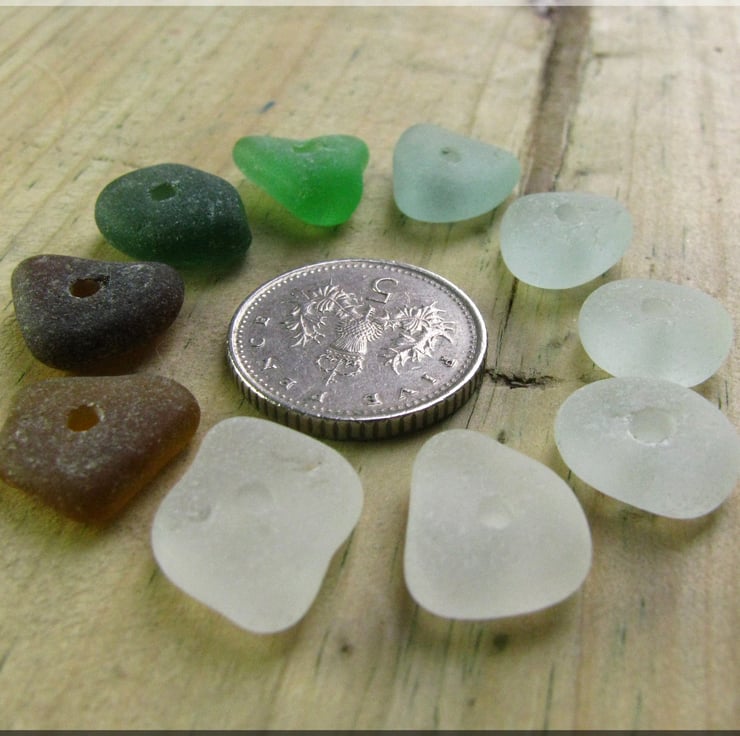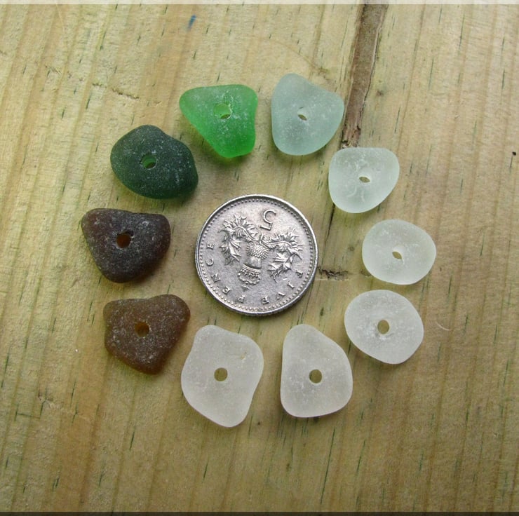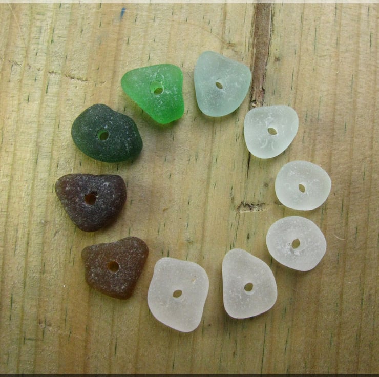 10 Natural sea glass beads, middle drilled, supplies (14)