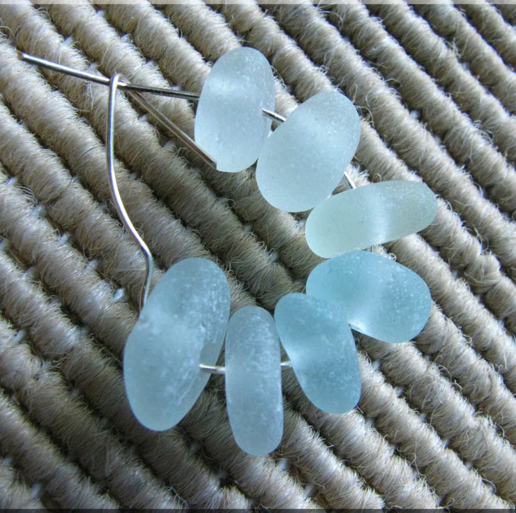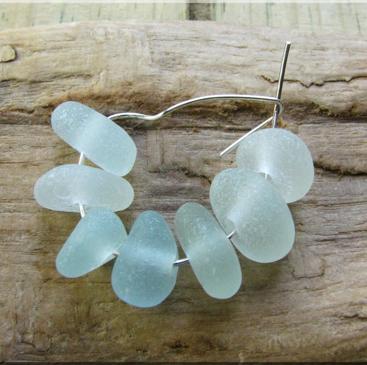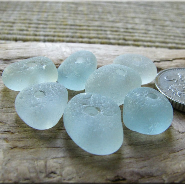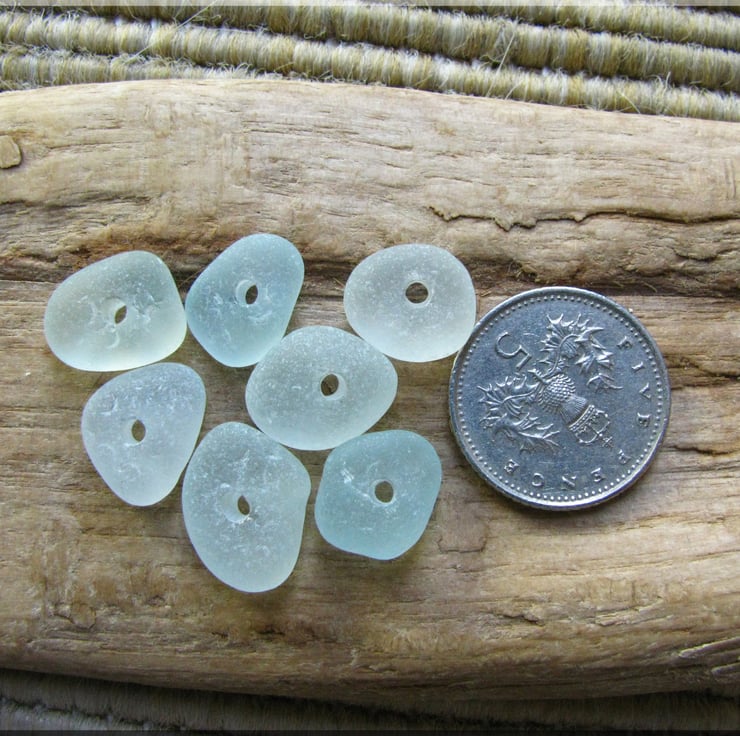 7 Natural sea glass beads, middle drilled, chunkies, supplies (16)