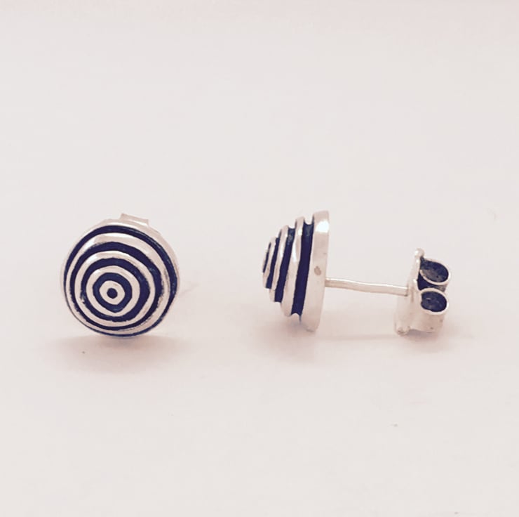 These slightly larger and heavier lined silver stud earrings are very sophisicated, they weigh 3.6 gramms and are 10mm diameter. All handmade jewellery from the Original Collection comes in a smart Alison Redman branded black box.