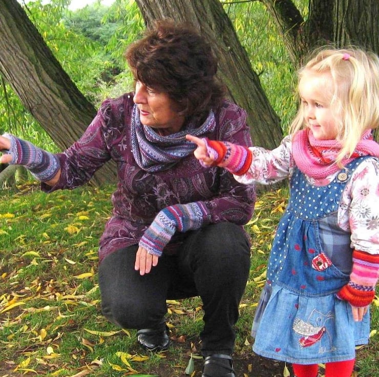 I love the thought that my granddaughter, daughter and myself can all wear these fingerless gloves and cowl. Might even make some for granddad for Christmas