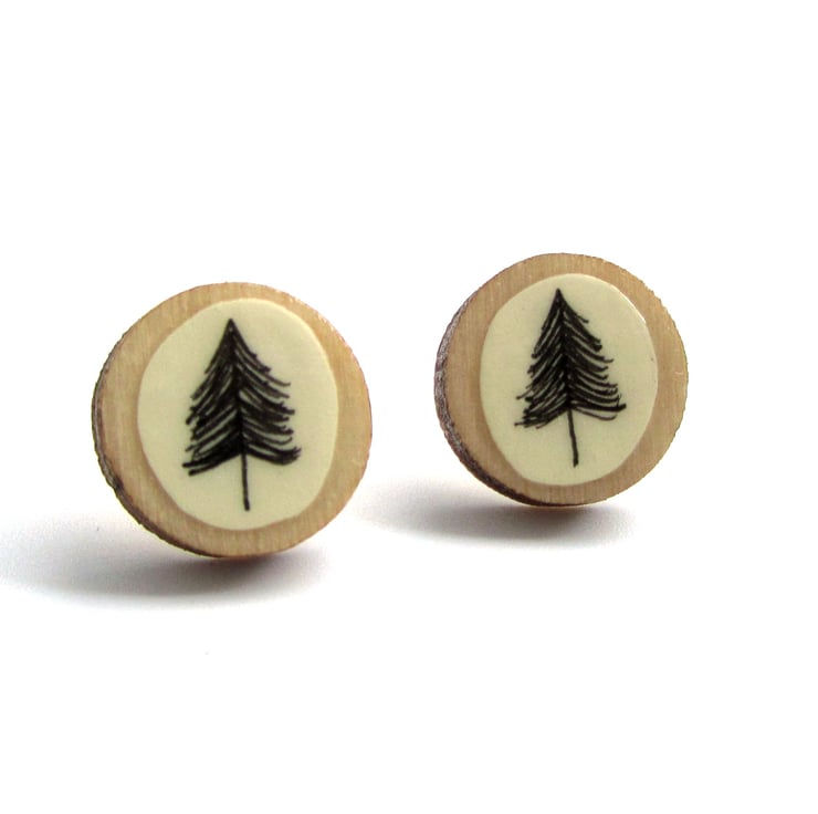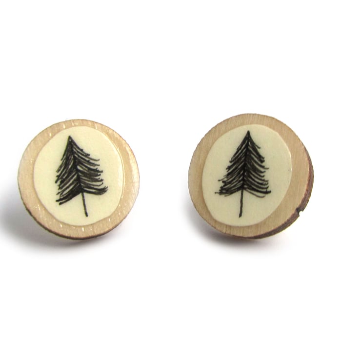 Featuring a hand illustrated tree design drawn on recycled paper and mounted on to pieces of circular wood. The pieces of wood are left with a natural finish. Sealed with layers of varnish and a protective enamel finish.