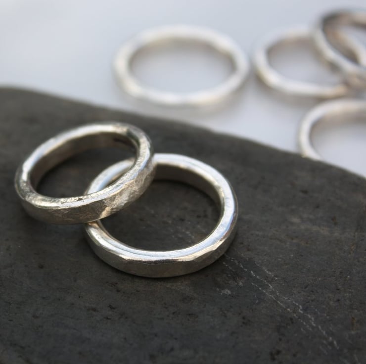 Ideal his and hers silver wedding rings. ( a lighter weight version can be made if preferred).