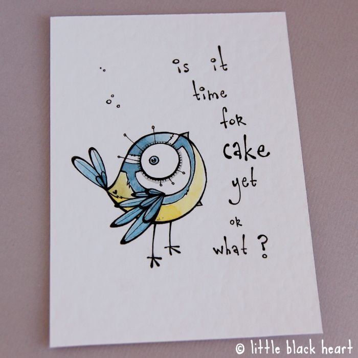 original artwork in artists pens and watercolour paints, on textured white 300gsm cardstock. drawn with a tiny