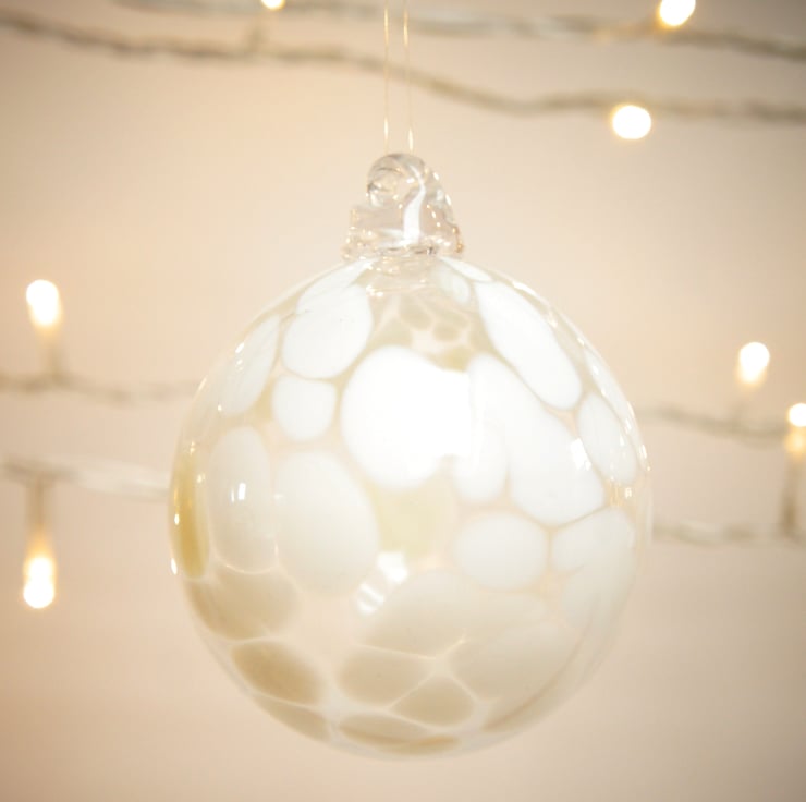 A Winter White glass bauble.