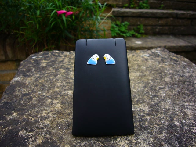 These enamel budgie earrings are very cute and would make a lovely gift for a bird lover.